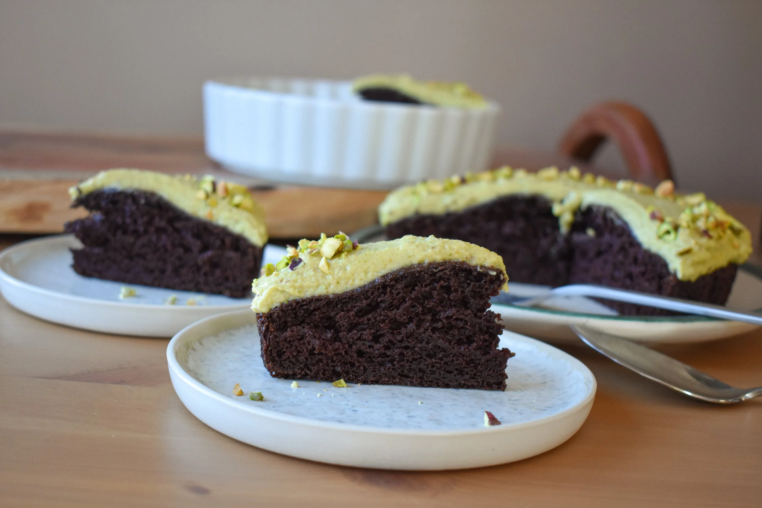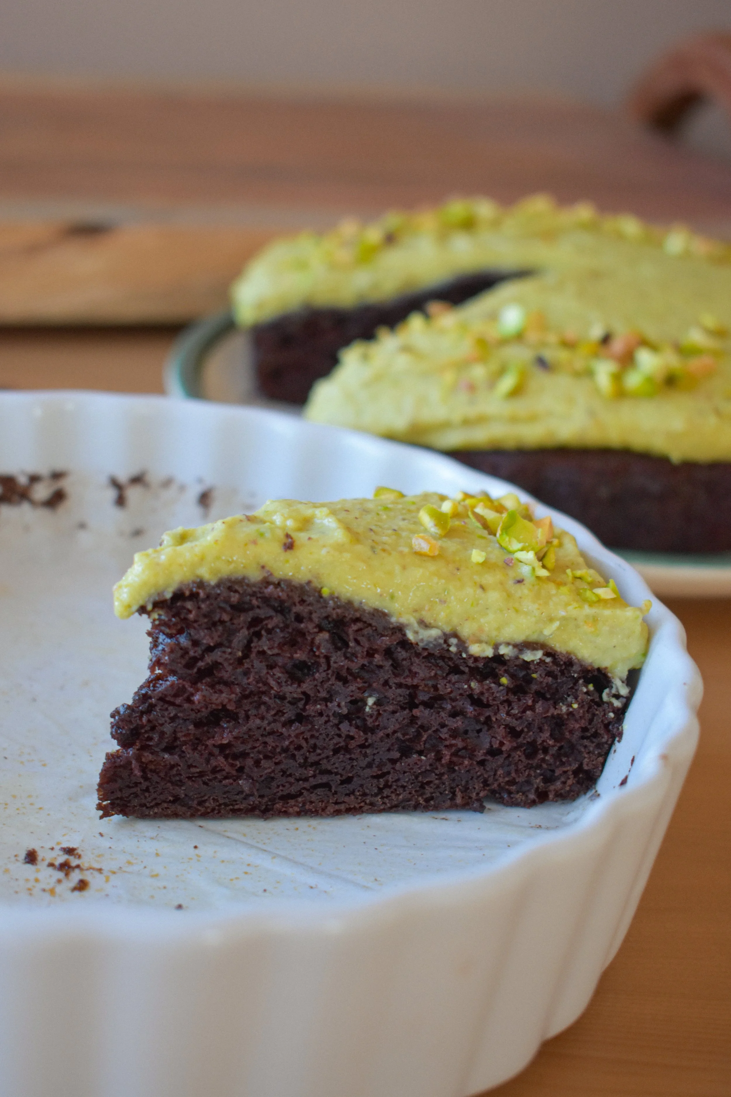 chocolate cake with pistachio cream