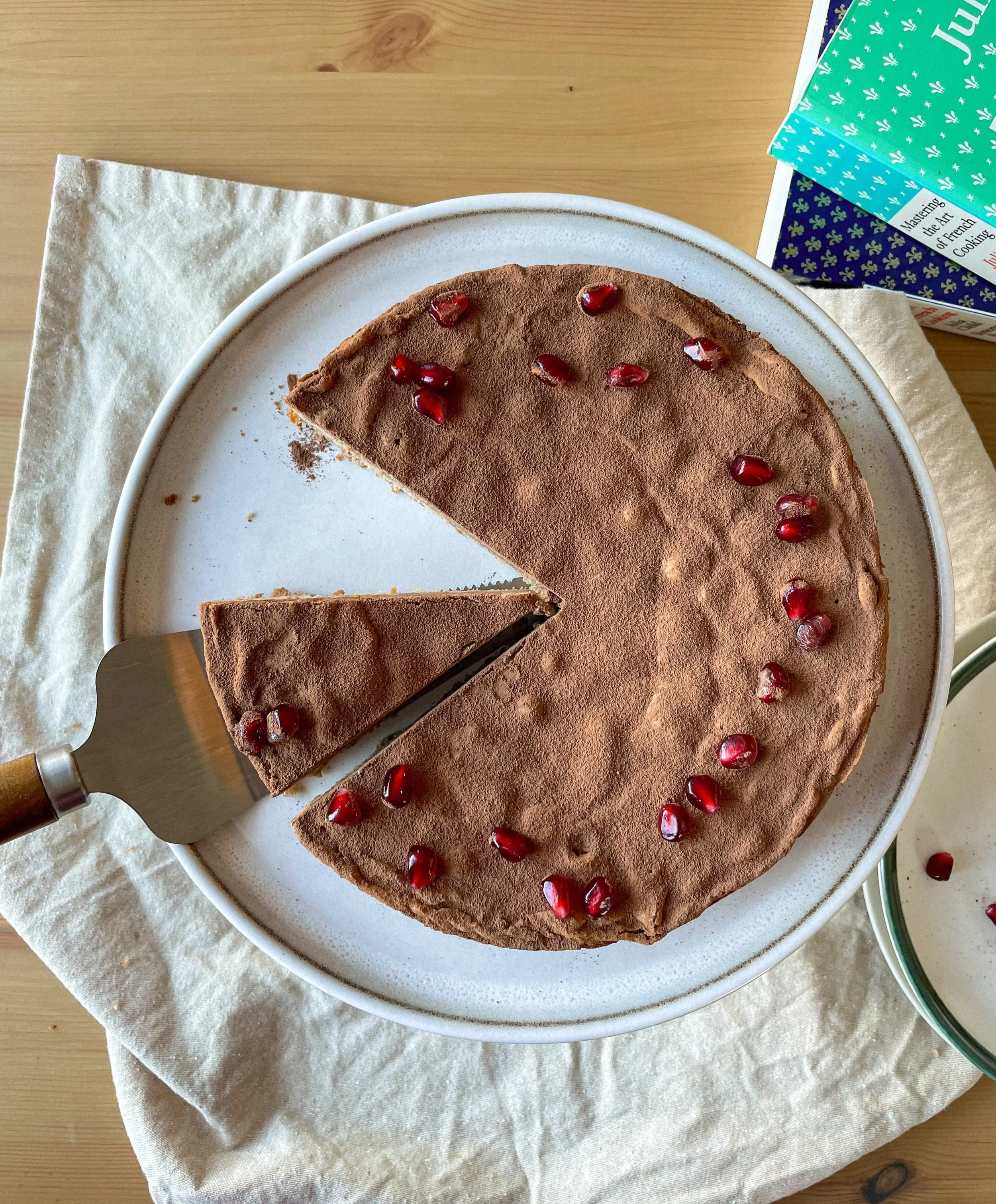 this cake recipe takes the classic creaming method, adds meringue and almond flour to create the most interesting texture. in some places, it's marshmallow and you can feel the bubbles pop in your mouth then in another bite, you get the perfume from the almond extract with the slightly gooey centre, one more bite and the almond flour lends a soft, crumbly quality with the coffee and chocolate not overpowering the whole thing, just there in the background, popping in every once in a while. overall it’s pretty nice and fudgy.