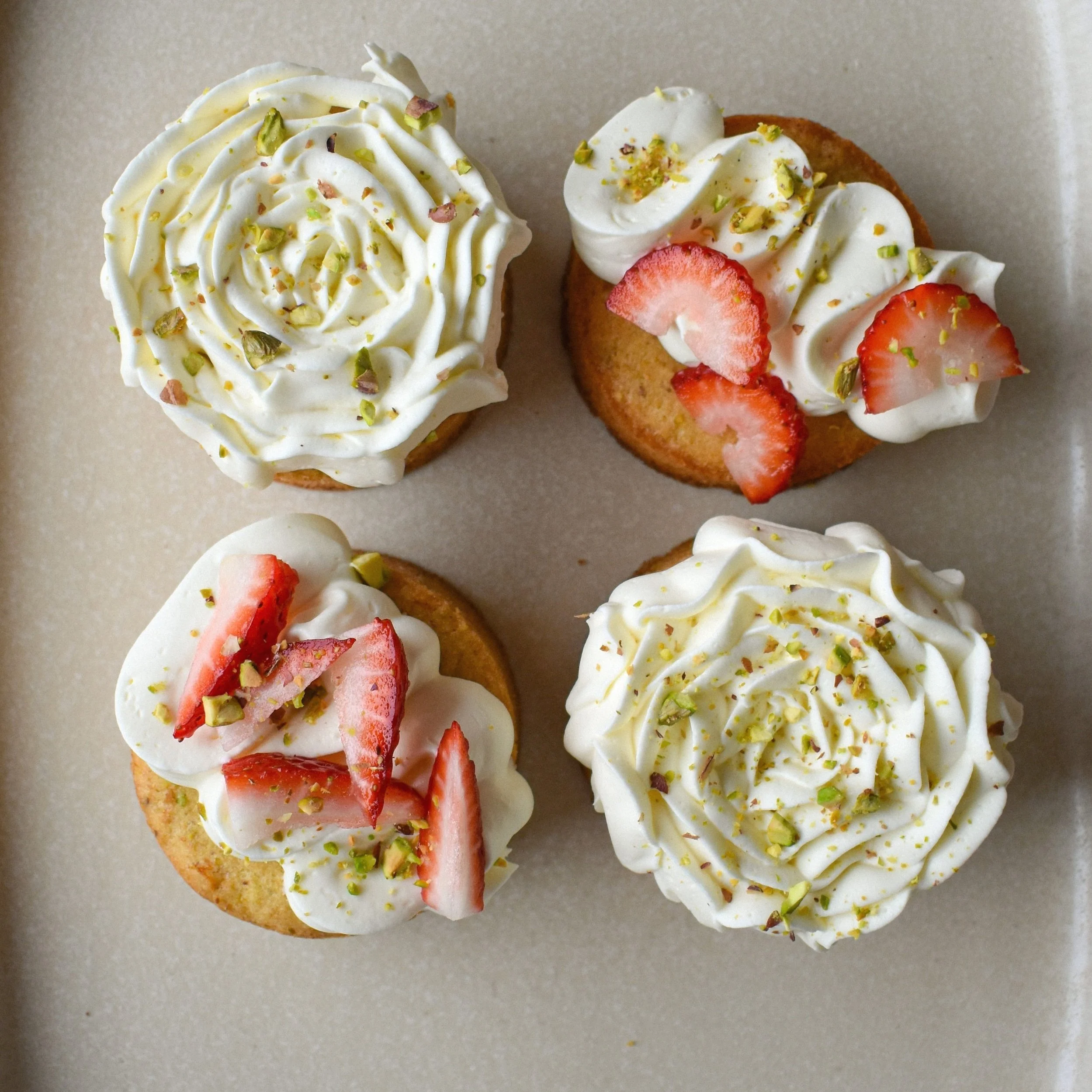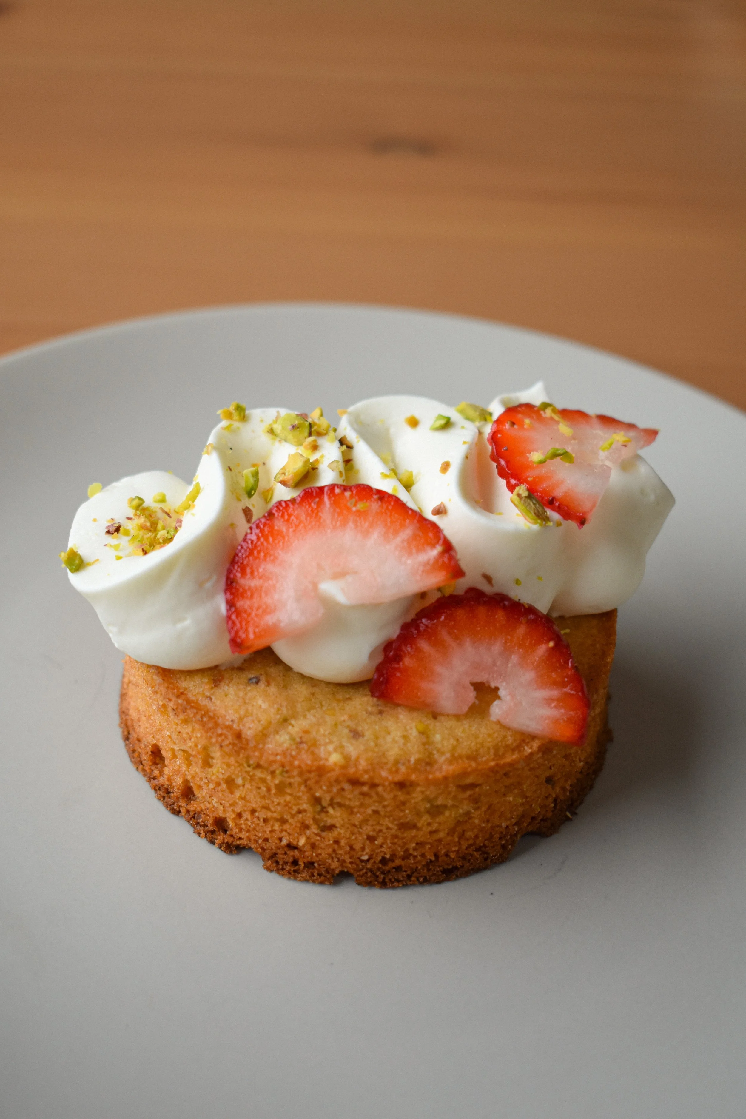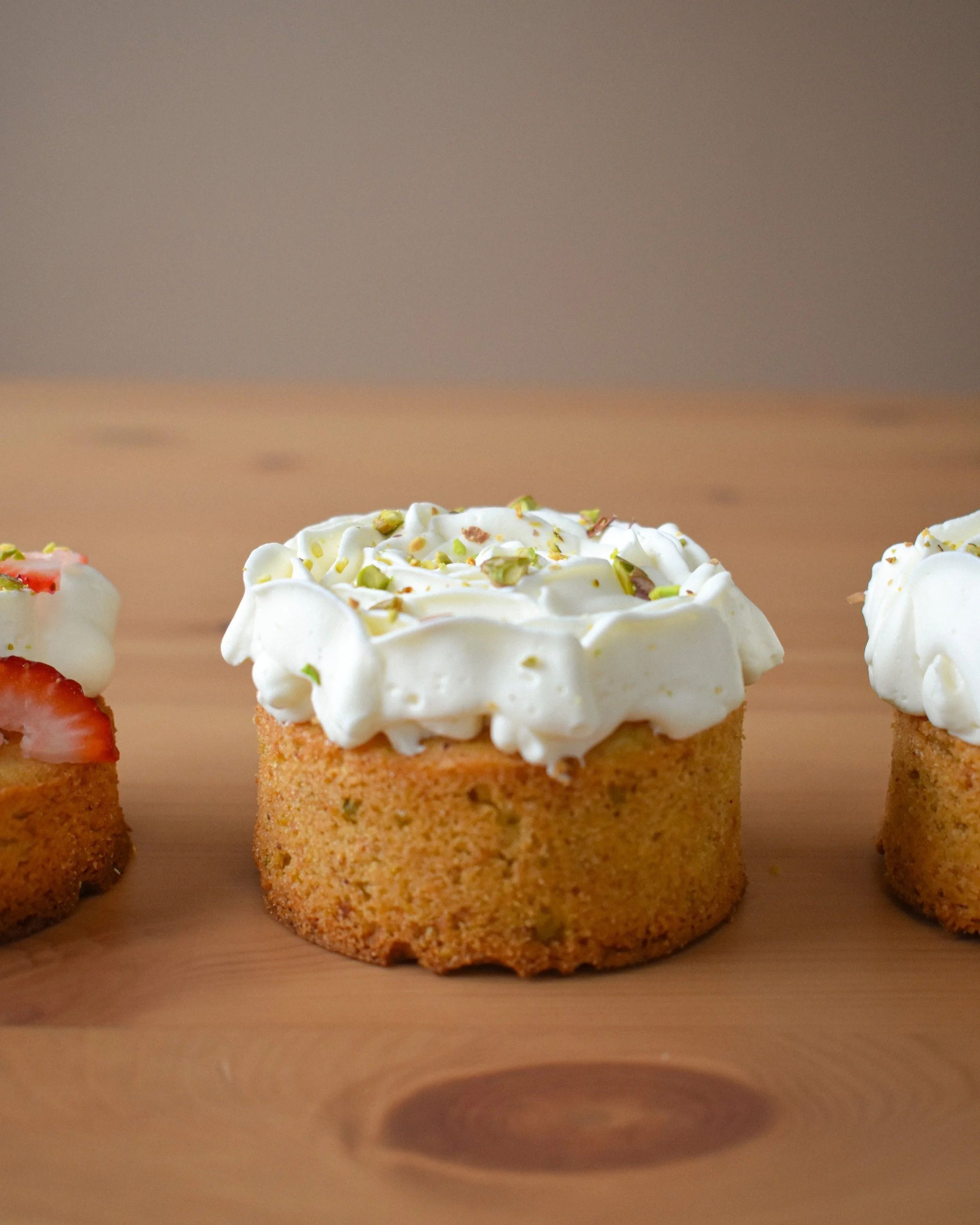 this cake has a delicate texture that comes from having equal parts flour to nut flour. it’s not light and fluffy like your traditional vanilla, these cakes are dainty, and the flavour profile reflects the texture.