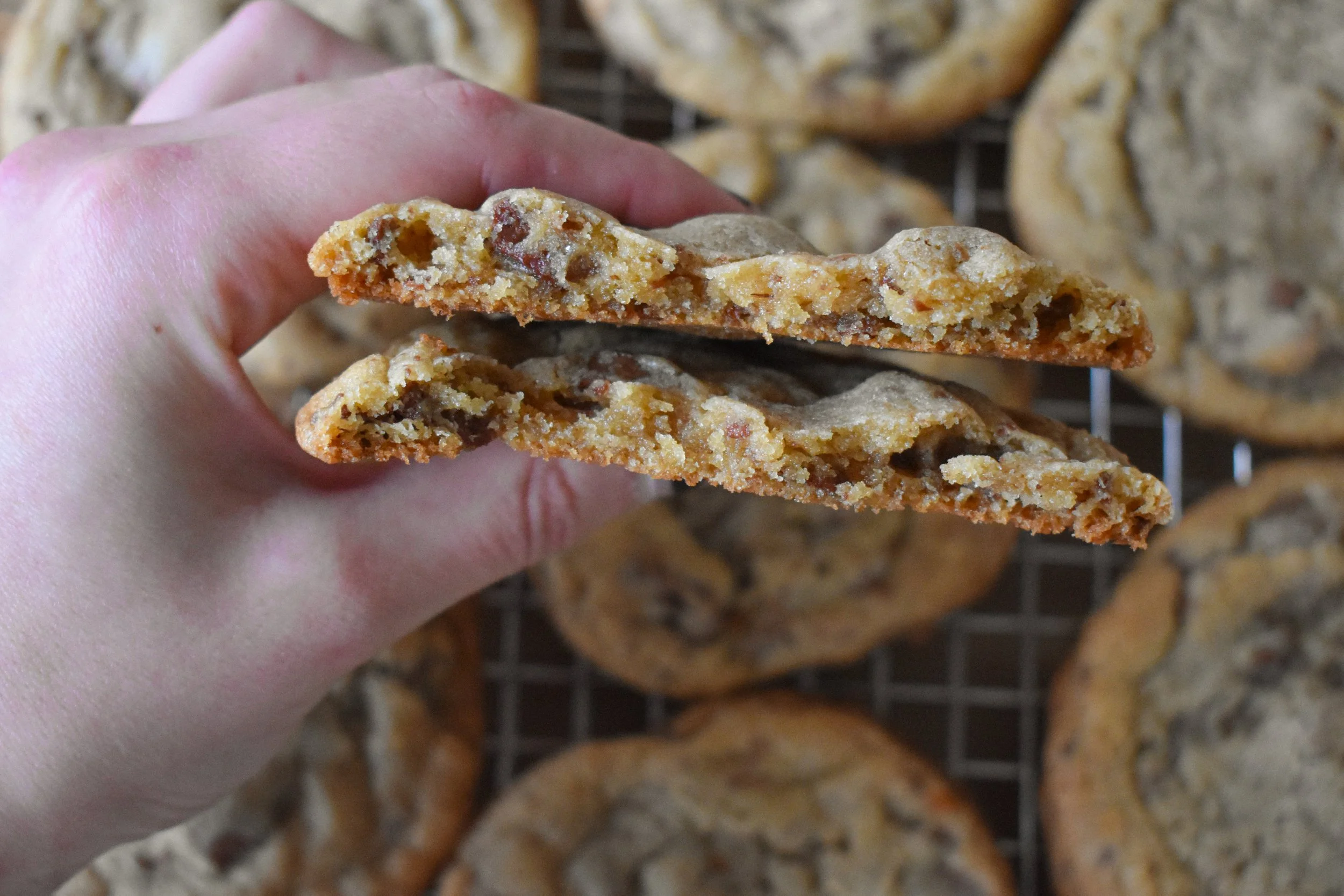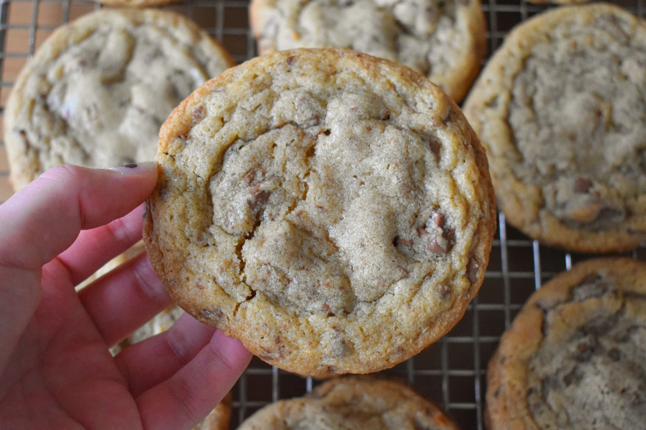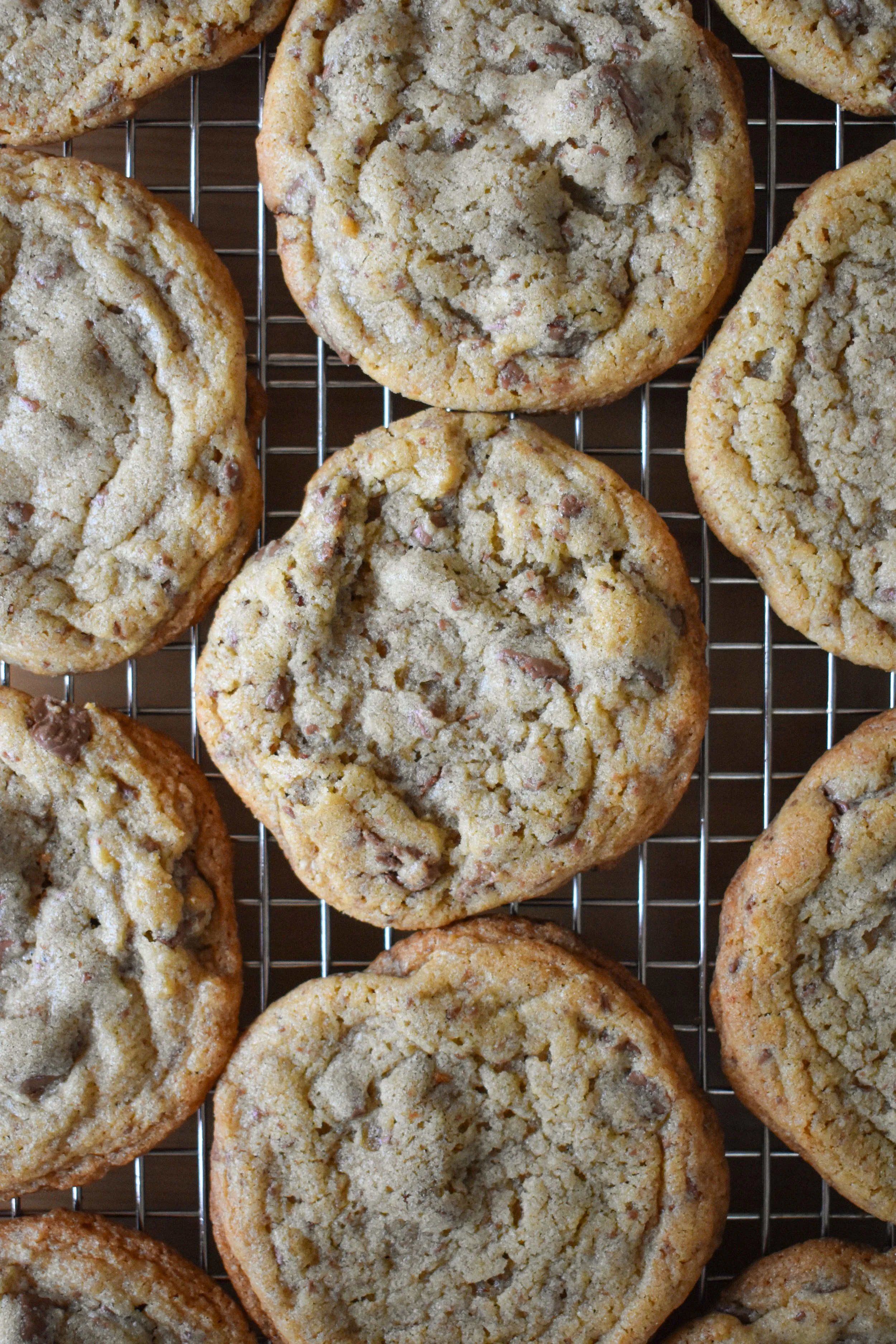 tahini brings a nutty flavour that differs from the typical brown butter flavour, not as rich, more subtle, slightly creamy. the tahini makes the cookie feel lighter and not as indulgent. You don’t always necessarily want that in baked goods.